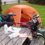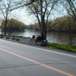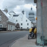 Had a slow start this morning because of rain, but he got a free breakfast (he doesn’t say from where). He cycled another 100km today to end up where he is – heading for Quebec City tomorrow.