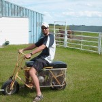 So far, I am only one day behind schedule, that’s not bad considering how long I have been on the road. I was supposed to be around brooks Alberta today but anyhow. This morning Richard and I strapped the bike on the trailer and drove down to Tuxedo Source for Sports (an oddly named bike shop) in Calgary to pick up a new rear wheel for Carmen. Now normally I don’t go gaga for components but you should see this wheel haha. It’s a heavy duty cyclocross wheel that will surely not cause me any problems. As a bonus, it has my name on it (the company that makes it is called alexrims). For lunch we went to Peter’s Drive-In, a popular burger joint in Calgary that specializes in high carb meals 🙂 Back home (for me home is where I am sleeping that night) I rode on the Tote Gote which is a small dirt bike that is quite famous in the Sharp family. I also fed the horses and checked out Mr Sharp’s tractors that he uses when he competes in tractor pulls. I would like to thank the Sharp’s for the generosity they have shown me, they’re definitely one of the kindest families I know.
