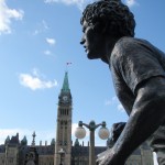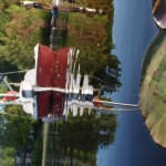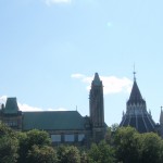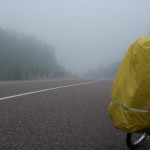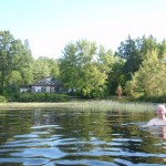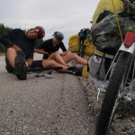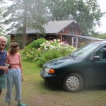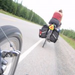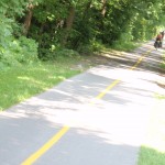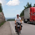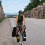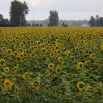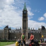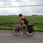 The 30th ended up being an eventful day. Leaving Deep River we rode on towards Renfrew after having breakfast at the Metcalfe’s. We had to get off the highway at Pembroke when Theo’s shifter cable snapped. Turns out the problem was a little more costly than a 3$ shifter cable. He ended up spending 140$ on a new shifter since one of his had become defective. Thankfully, the bike shop in Pembroke, Yantha Cycles, had the exact shifter in stock. The owner of the shop actually installed his brother’s shifter onto Theo’s bike and on we went. That night we camped about 13 km west of Renfrew at a KOA campground. I had such a weird feeling putting up the tent for the last time. The whole routine of setting up camp was one of the things I disliked the most about the whole trip. Given the fatigue and the mosquitoes I would often feel like just crawling into the tent and sleeping, but I would never do it. Forget the dishes or the cooking of a hot meal, my body would just tell me to sleep. That night I enjoyed my last camping experience (for now 🙂 ) with Theo and Caro topped off with a reading of Mr. Armstrong’s book. I got up extra early the next morning around 6 making sure to set my alarm on my cell phone the night before. That’s something I hadn’t done the whole trip! Waking up to a cloudy sky I gave ourselves a 50/50 chance of riding in rain that day. We got back on highway 17 and took it all the way to Arnprior. Once in Arnprior I had my usual double breakfast with coffee at a diner. We also opted to take the back roads after Arnprior. We went through Galetta, Carp, Kanata and we eventually connected on the Ottawa river bike path that took us all the way to my home in Orleans. About 10 clicks before Carp the skies opened up but only for about 20 minutes. Just enough for me to put on my sweat fest rain suit realizing that the rain had already stopped. When the clouds parted and the rain ceased we were treated to a beautiful landscape of sunflower fields and winding roads reminiscent of the French countryside. I’ve ridden around Carp before but this time it was definitely different. It was strange going up the same hills and knowing the names of the roads. Something had changed though. The hills were not as challenging, either because of the endurance I’d built up or the adrenaline of the last ride flowing in my body.
